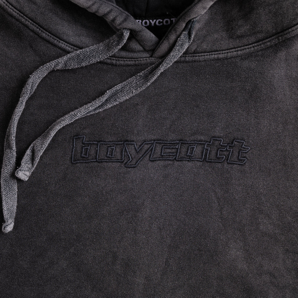 A.H.B. BLK STONEWASHED EMBROIDERED "BOYCOTT" HOODIE COD:001-600-303